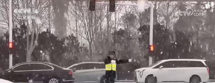 在陕西咸阳,交警2月20日起全员上路执勤,加强对桥梁、坡道、涵洞等重点路段的隐患排查,并协调市政部门开展除冰除雪工作。