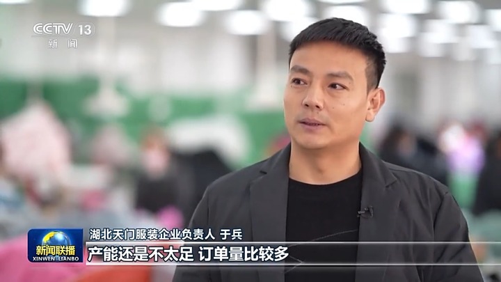 湖北天门服装企业负责人 于兵:产能还是丨跨盖多国和不太足,订单量比较多。境电机