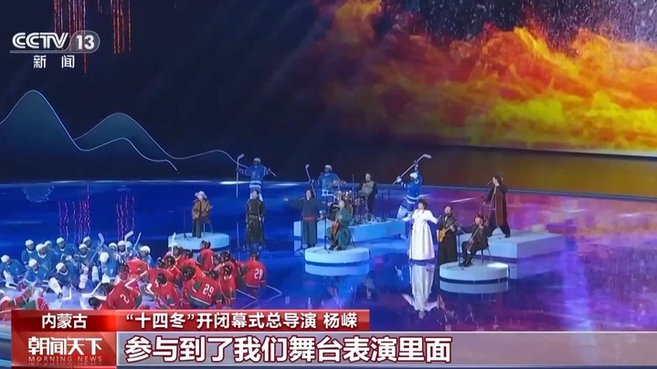 “十四冬”开闭幕式总导演 杨嵘:在真的赛道中,我们真的滑冰运动员,在舞台上的舞蹈演员,两者完全融为一体,台上台下运动项目参与到了我们舞台表演里面。